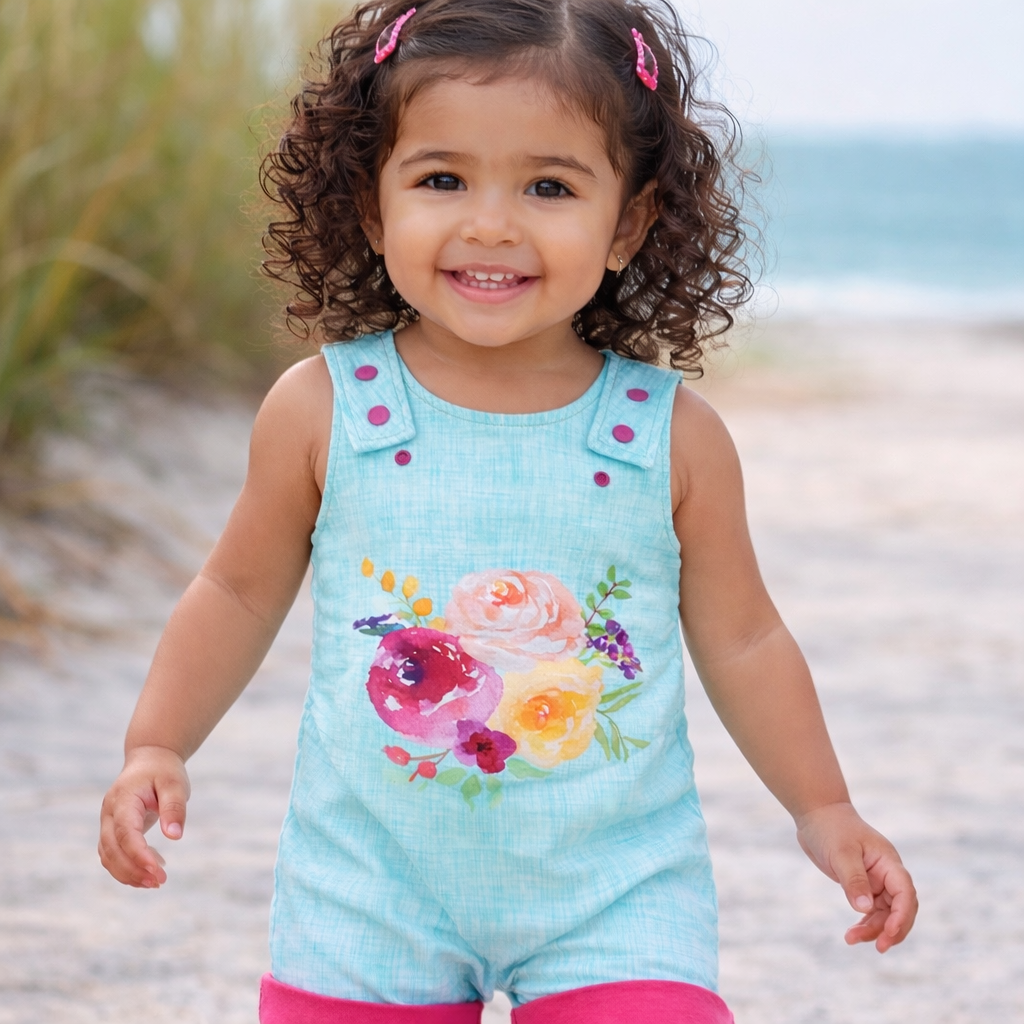 3T-6Y Romperall Shorts ; Summer Florals